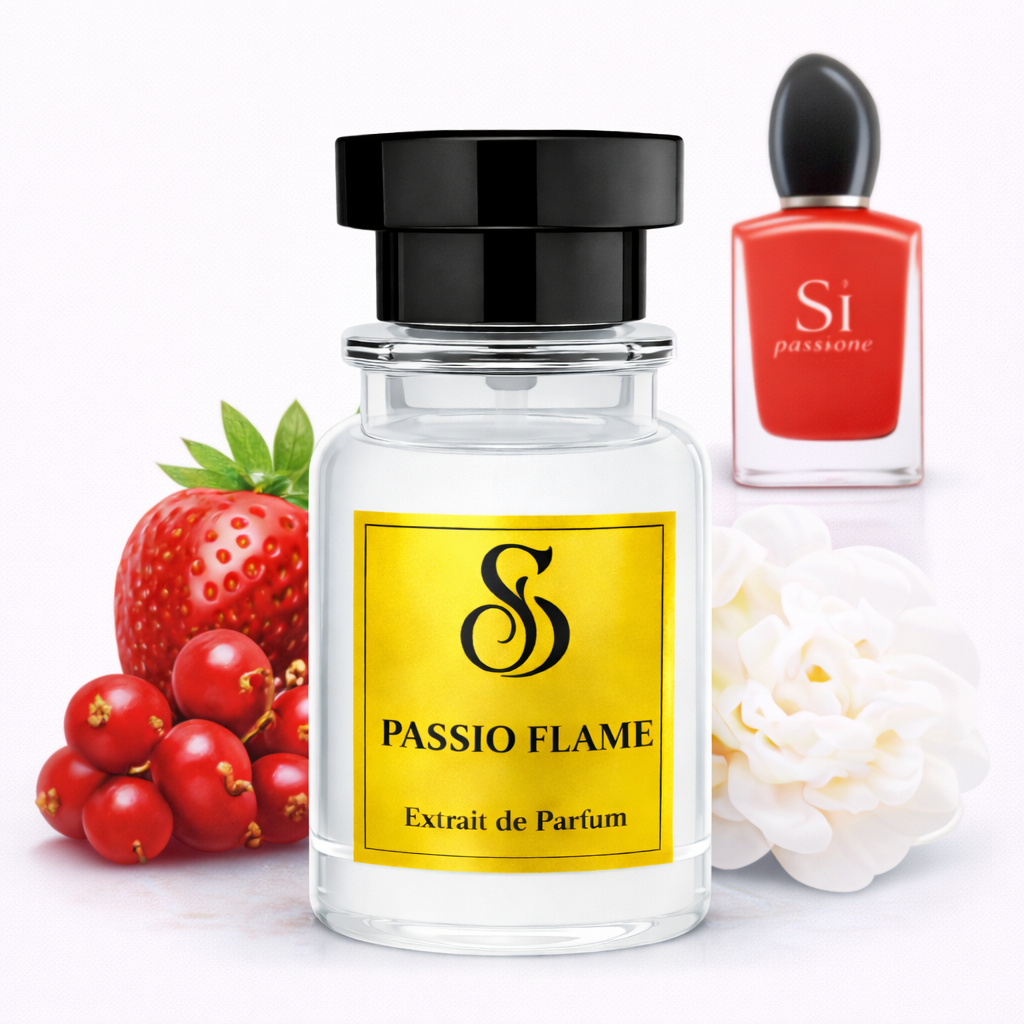 Passio Flame ir sievišķības un kaisles iemiesojums – iedvesmo no ikoniskā Si Passione aromāta , tas atklāj drosmīgas, pašpārliecinātas un dzīves baudītājas raksturu. This Extract de Parfum ar 30% aromāta eļļas koncentrāciju izceļas ar izcilu noturību un siltu, juteklisku enerģiju, kas paliek atmiņā visas dienas garumā.